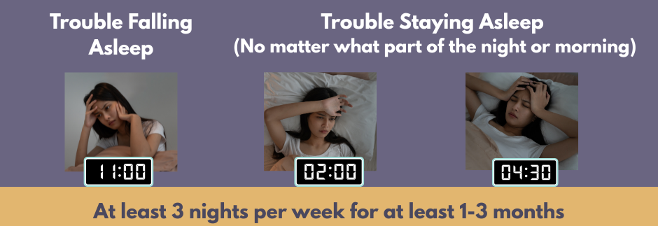 If you struggle to fall asleep or stay asleep 3 nights a week or more for over a month — and it’s dragging down your days — you may have insomnia disorder. Talk with your healthcare provider about treatment options.