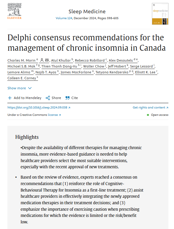 Consensus recommendations for the management of chronic insomnia in Canada