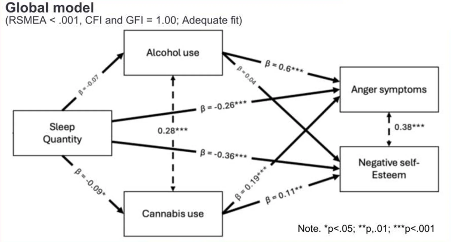 More sleep was associated with lower cannabis use, which in turn was linked to: